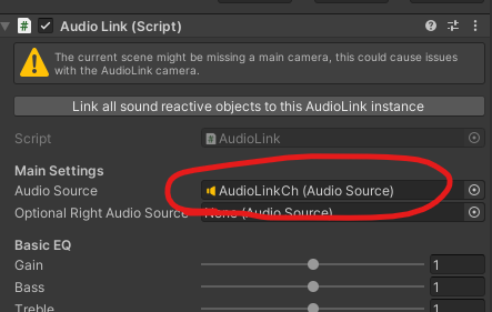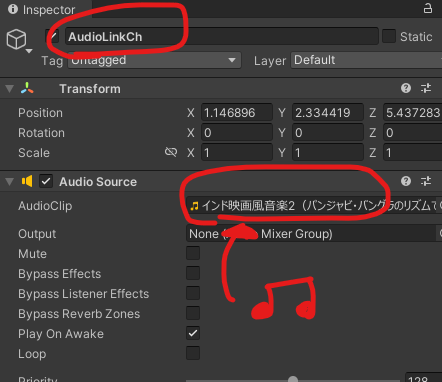 Audio LinkのAudio Source欄を先ほど作った音源に変える
