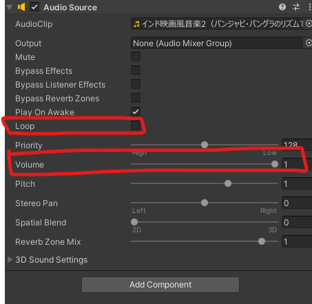 音源を繰り返したい場合はLoopにチェックを入れて下さい。