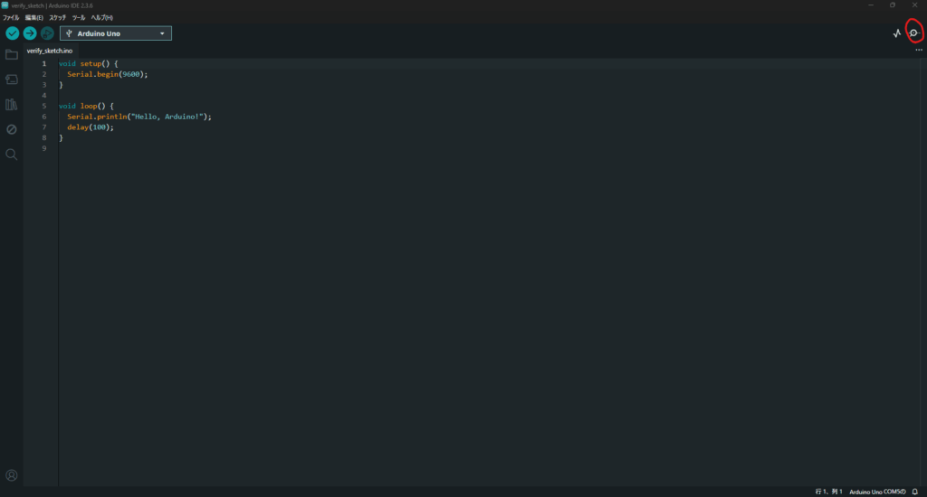 Arduinoの動作確認のために、ソースコードを入力してみましょう。