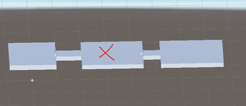 シーンの読み込みは上手く行ったのですが、上記の×の部分で足場がなぜか消えてしまいます(時間経過で)