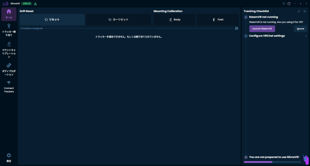 最新版SlimeVRServerのv18.2.0にて、clusterやBeat Saberなどのアプリでトラッカーが認識しなくなる不具合があります。