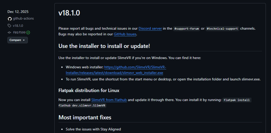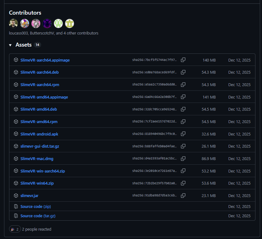 Assetsをクリックして各々の環境に合わせてダウンロードSlimeVR-win64.zipをダウンロード